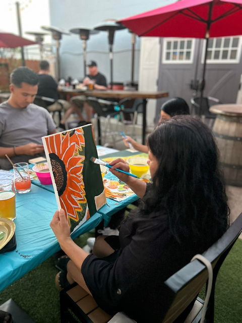 Adults love our paint parties for their relaxed, welcoming vibe. We focus on building community, having fun and encouraging creative expression—not just recreating the same exact painting across every canvas.